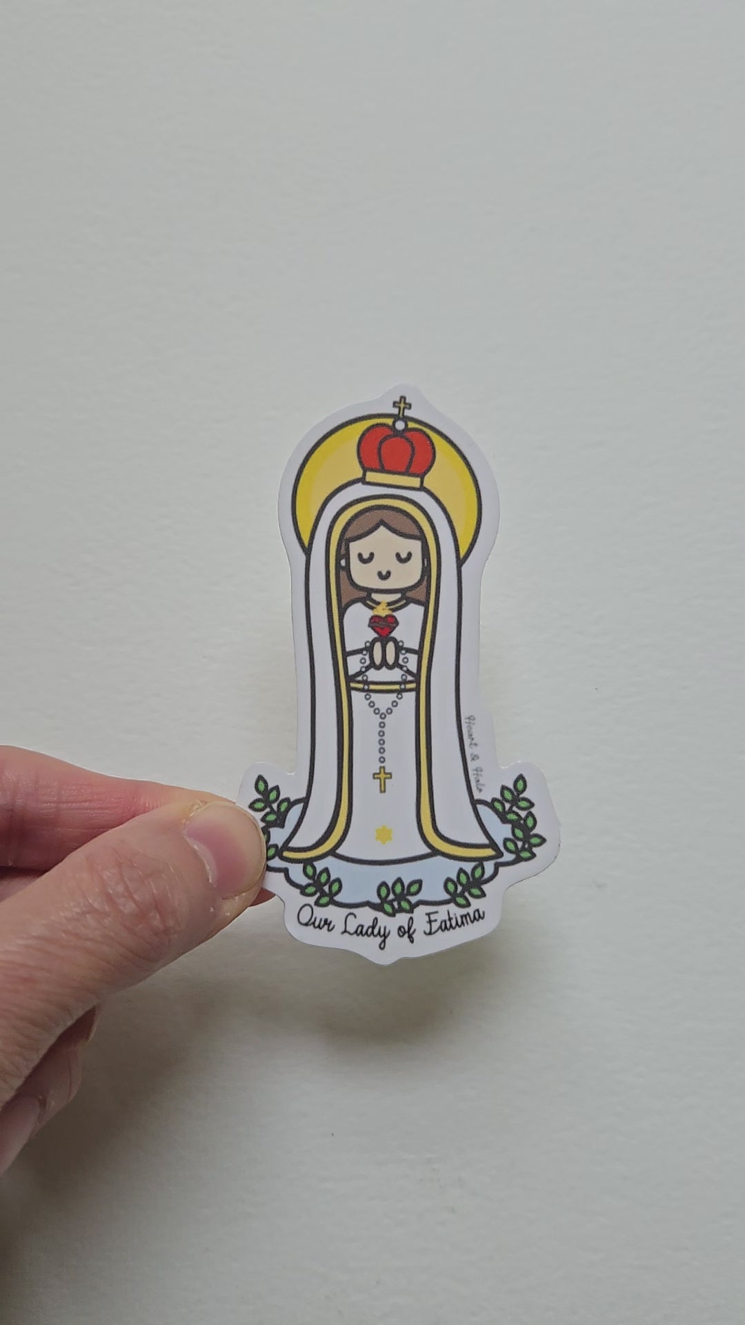 Little Hands, Big Faith! Our Lady of Fatima Waterproof Sticker Designed by a 6-year-old artist Encourage connection with Mother Mary through the power of creativity and personal expression. Support a young artist and share a symbol of faith.
