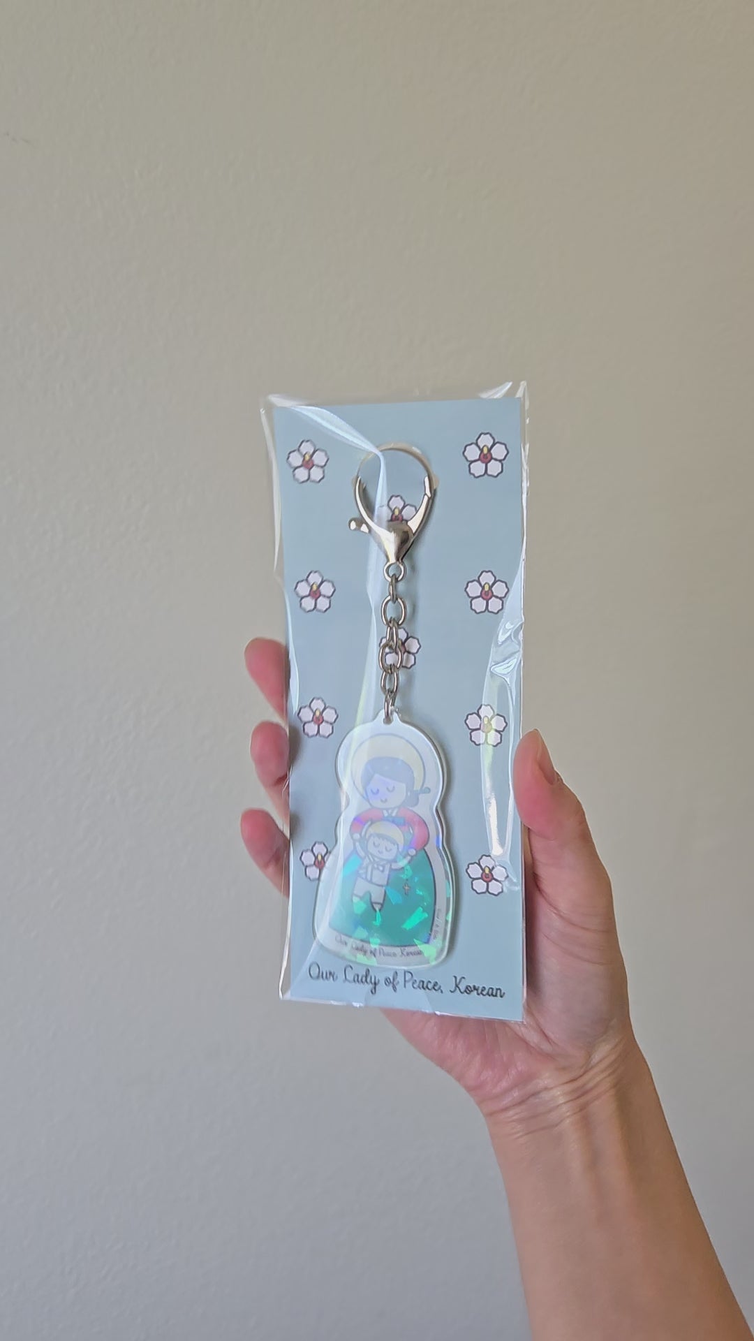 Our Lady of Peace Korean Acrylic Keychain | 2.75" Double-Sided Catholic Charm | Childlike Art