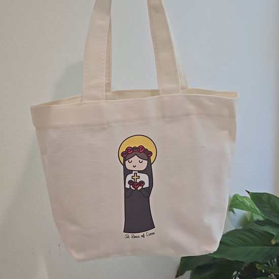 Carry your faith with a touch of sweetness with our St. Rose of Lima Cute Mini Tote Bag!